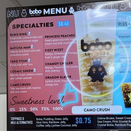 Overall, Bobo The Boba is a delightful addition to the Northridge boba scene, offering a diverse menu, friendly service, and a cozy atmosphere. If you're looking for quality boba drinks and tasty treats like taiyaki waffles, Bobo The Boba is definitely worth a visit.